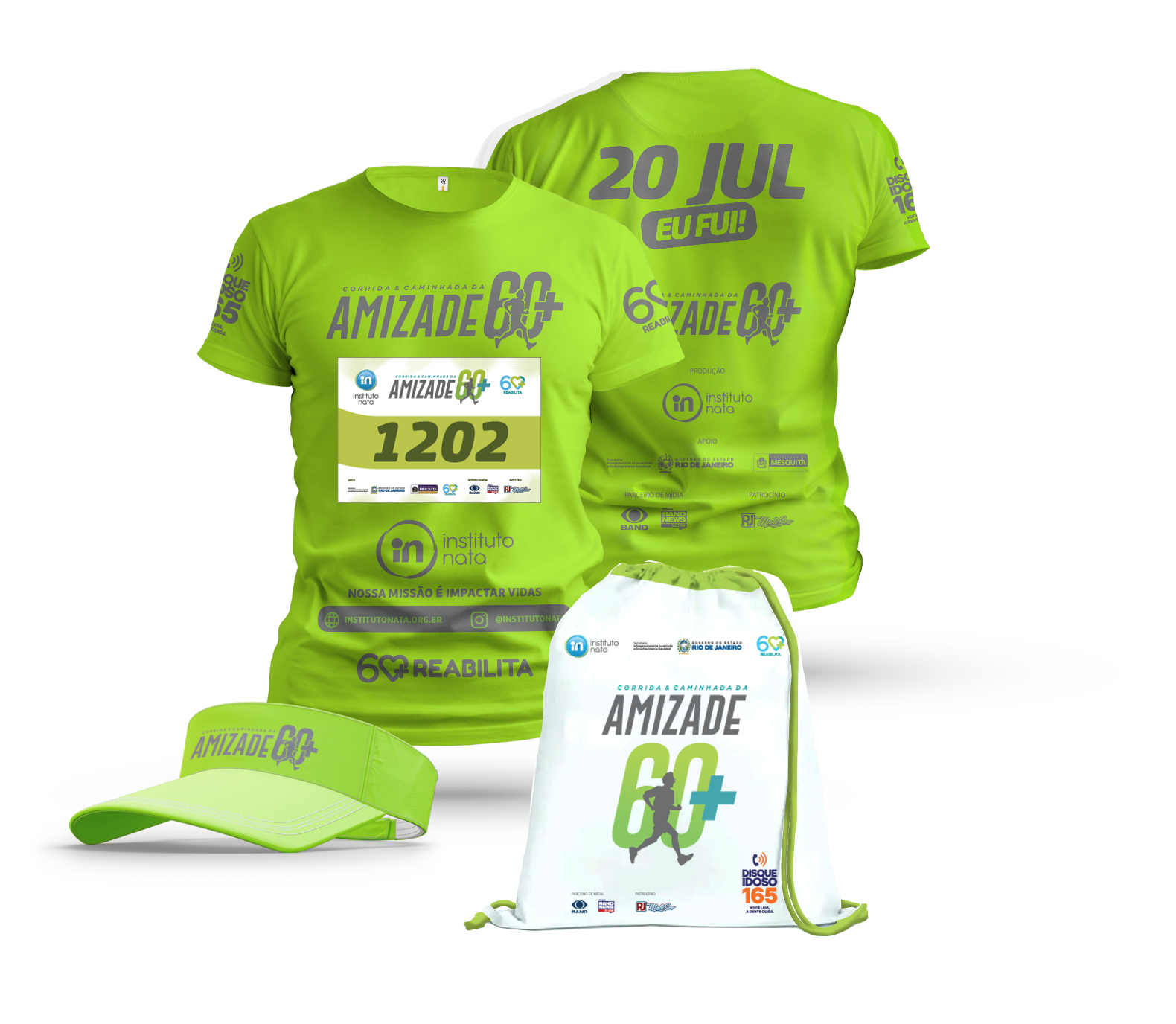 Art. 14º Os participantes com 60 anos ou mais, devidamente inscritos na Corrida 60+, ou seja, com sua inscrição feita e confirmada pela organização, terão direito a um kit composto por: 01 bolsa, 01 camisa do evento, 01 viseira e 01 número de peito.